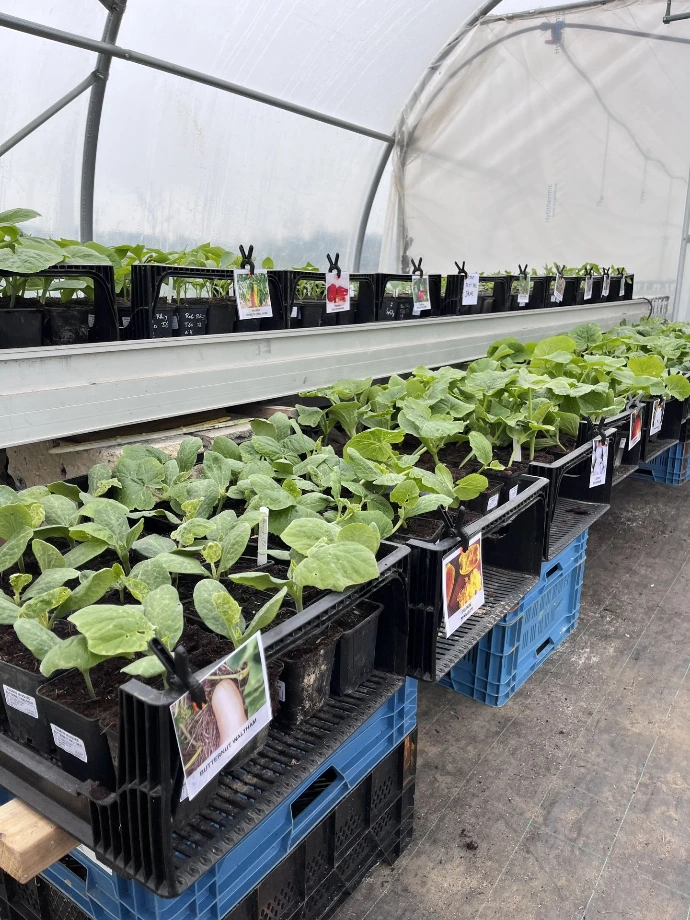 Chaque printemps, nous proposons une belle diversité de PLANTS BIO de légumes, fleurs, aromates et petits fruits. Nous mettons l’accent sur des variétés locales, robustes et délicieuses. Et la plupart des plants proposés sont issus de semences produites à la Préale !